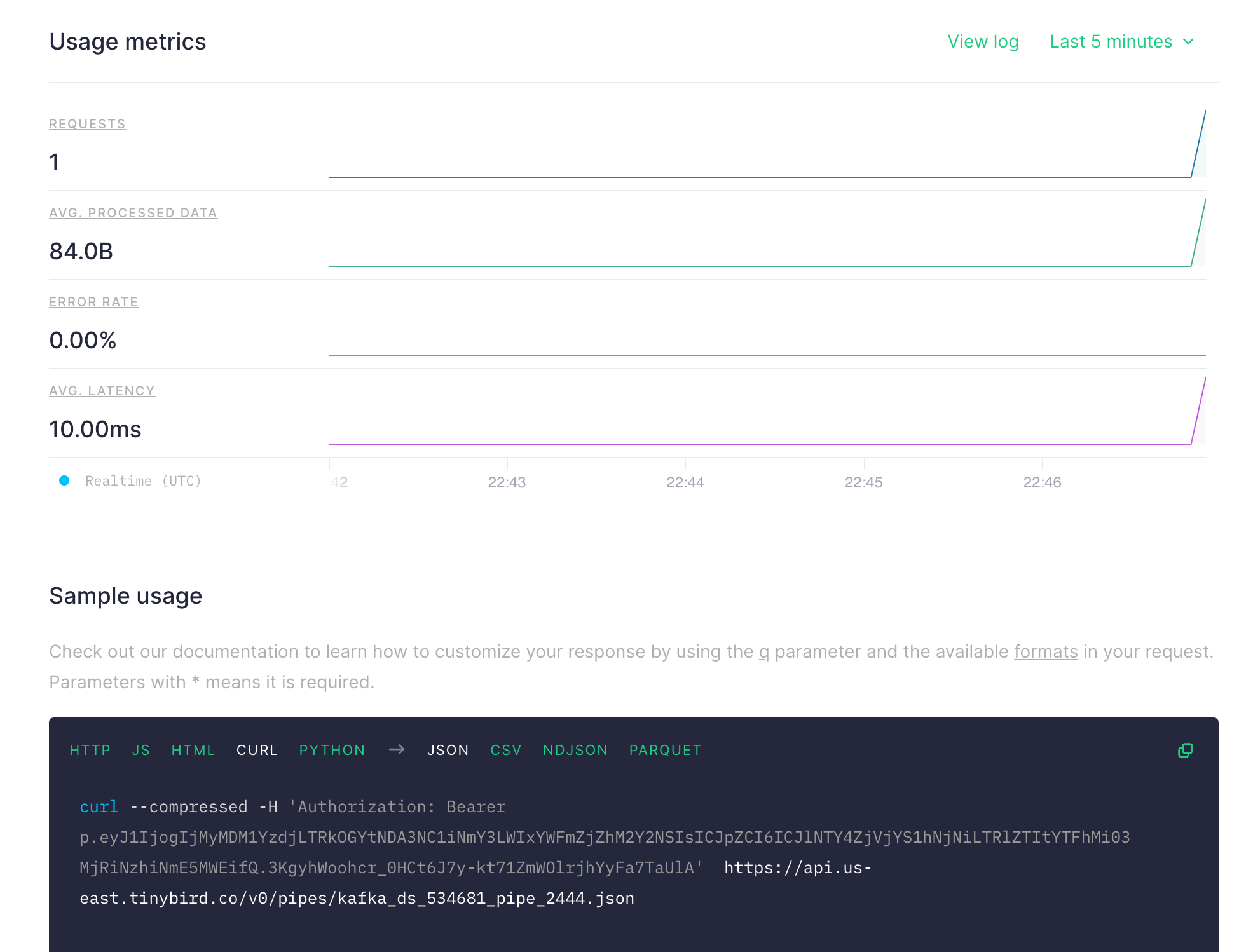 curl --compressed -H 'Authorization: Bearer p.eyJ1IjogIjMyMDM1YzdjLTRkOGYtNDA3CJpZCI6ICJlNTY4ZjVjYS1hNjNiLTRlZTItYTFhMi03MjRiNzhiNmE5MWEifQ.3KgyhWoohcr_0HCt6J7y-kt71ZmWOlrjhYyFa7TaUlA'  https://api.us-east.tinybird.co/v0/pipes/kafka_ds_534681_pipe_2444.json