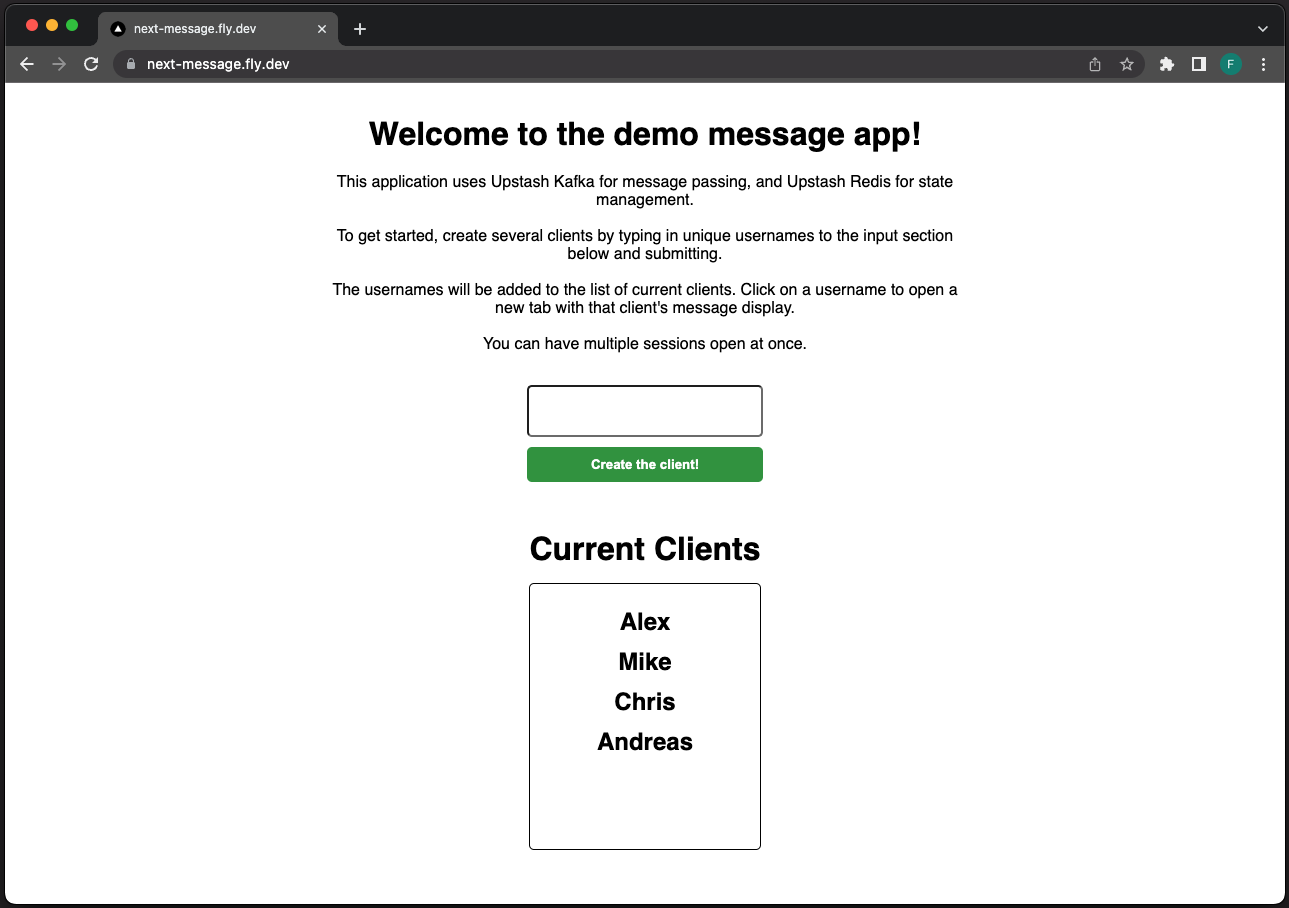 This application uses Upstash Kafka for message passing, and Upstash