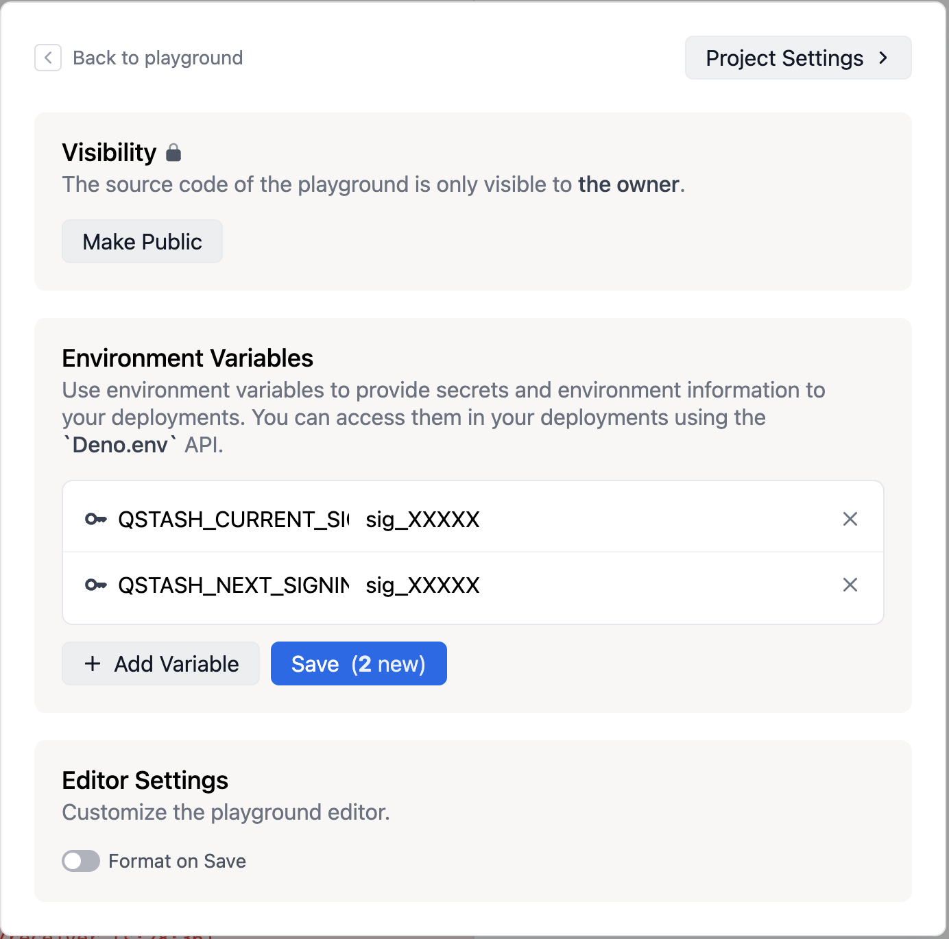 Get your QSTASH_CURRENT_SIGNING_KEY and QSTASH_NEXT_SIGNING_KEY from Upstash and then set them in deno deploy.