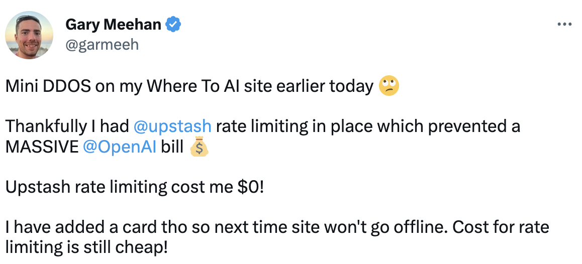 RestorePhotos is an innovative application that restores old face photos using AI. As it gained popularity, the author implemented Upstash Redis to rate limit API usage, improving efficiency and cost-effectiveness. Check here the code section where rate limiting is implemented.