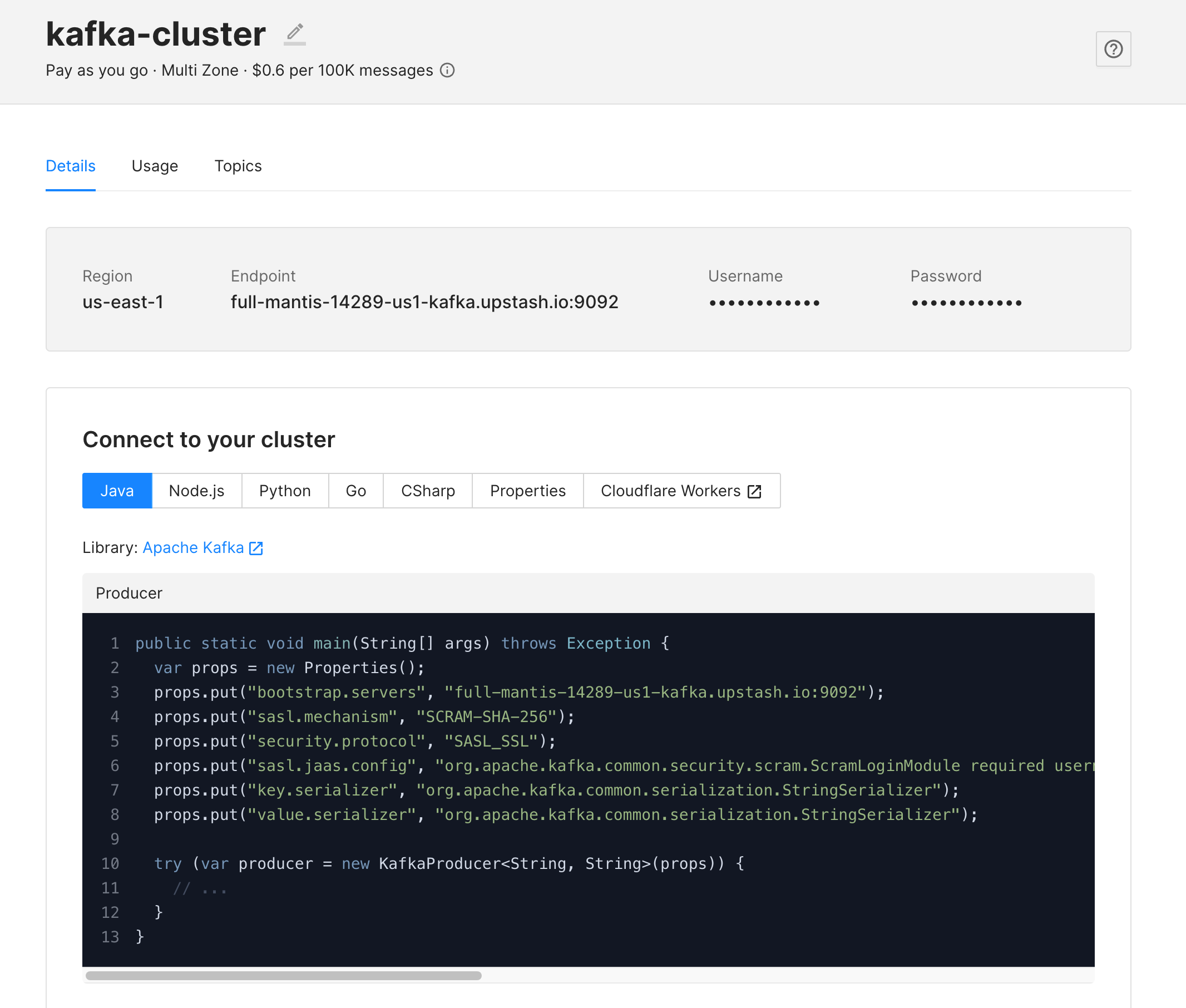 You will see the Kafka Details page: