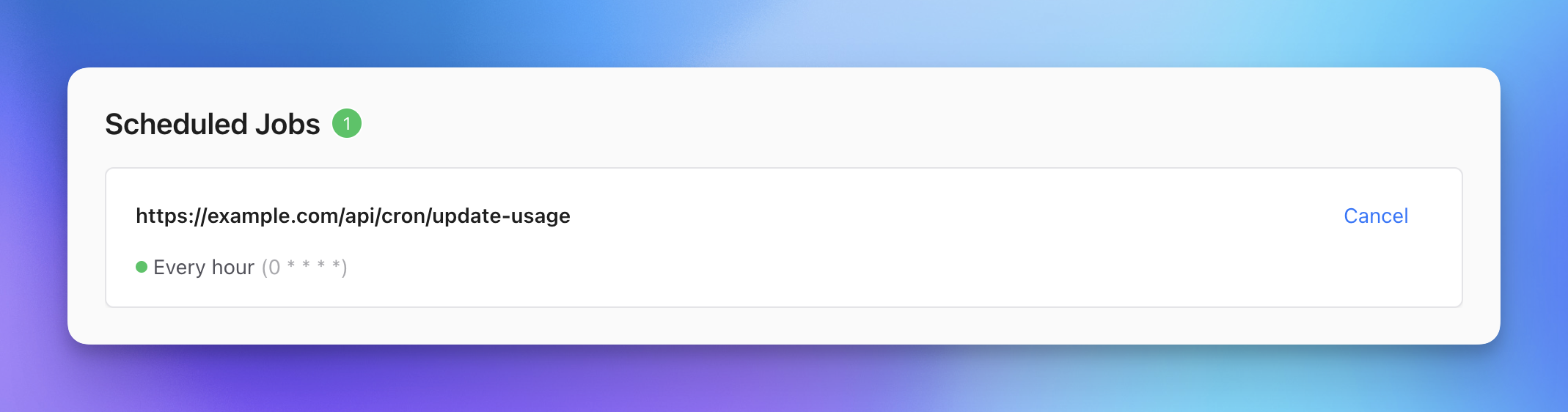 }Given this code, we can now create a CRON job endpoint using QStash. Our CRON job endpoint will be triggered at the URL /api/cron/update-usage.